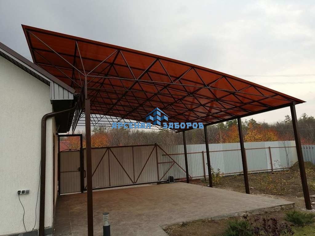 Заказали в начале прошлого года навес. В офисе фирмы выбрали его с понравившимся нам цветом поликарбоната. Замер произвели сами накануне, поэтому в услугах замерщика не было нужды. После оплаты 50 процентов нам назначили дату приезда и монтажа навеса. Сотрудники пояснили, что подобный объём работы занимает три дня, а также сообщили о необходимости оплаты дороги бригады за эти дни. Бригада вовремя прибыла в назначенный день. Работа спорилась, установка прошла довольно быстро, так что хватило двух дней. Уже 8 месяцев проблем с навесом нет, всё красиво и аккуратно. Планируем на этот год опять обратиться к ним, понадобился навес (козырек) над входной дверью. Компания Арсенал Навесов очень понравилась. Хотим пожелать ей процветания.